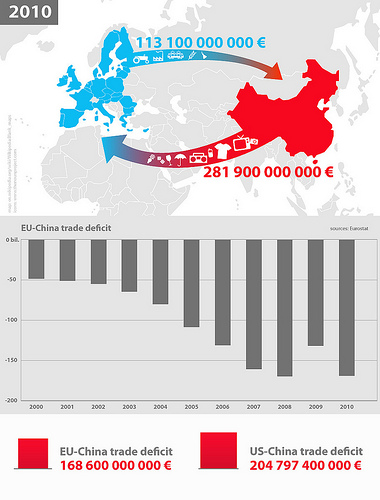 With developed markets on the brink of recession, China has become the growth market for many European exporters. In 2010, they exported goods and services worth some €113.1 billion to China. But complaints about unfair trade practices, an artificially low yuan and political hurdles are problems. Our info graphic shows the EU trade deficit with China was €168.6 billion in 2010.