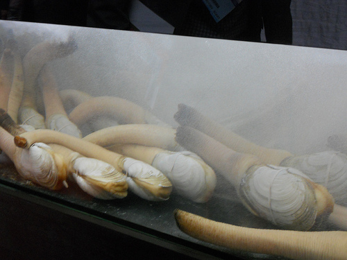 A tank of geoducks from British Columbia seafood suppliers on-site at China Seafood Expo in Quindao. November 2, 2011 www.britishcolumbia.ca